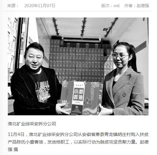 《中国煤炭报》:淮北矿业集团综采安拆分公司助力扶贫攻坚