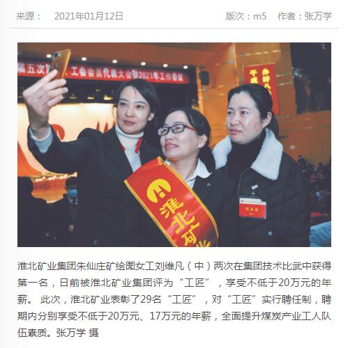 《中国煤炭报》:淮北矿业集团朱仙庄矿绘图女工被淮北矿业集团评为“工匠”