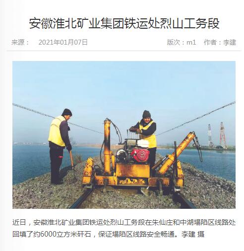 《中国煤炭报》:淮北矿业集团铁运处保证塌陷区线路安全畅通
