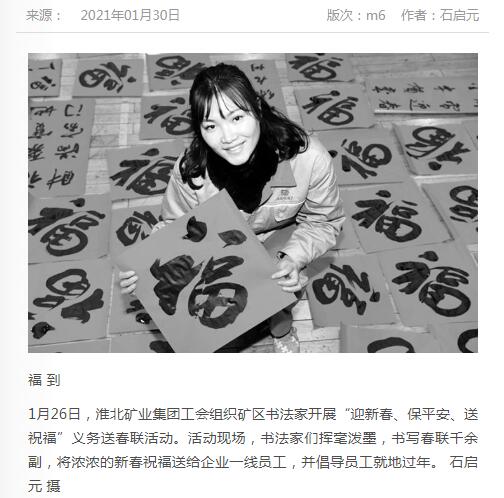 《中国煤炭报》:淮北矿业集团开展“迎新春、保平安、送祝福”送春联活动