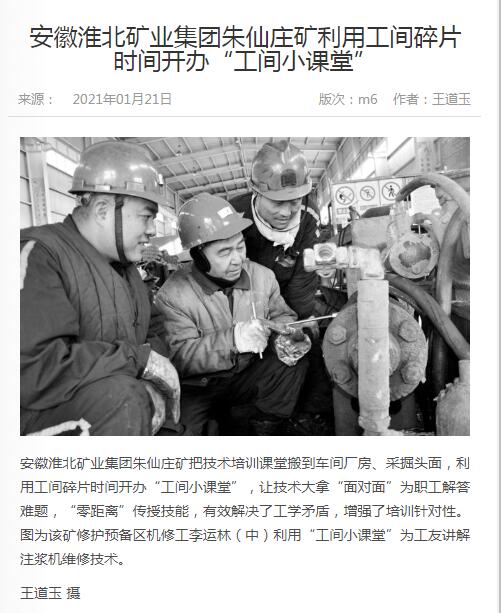 《中国煤炭报》:淮北矿业集团朱仙庄矿利用工间碎片时间开办“工间小课堂”