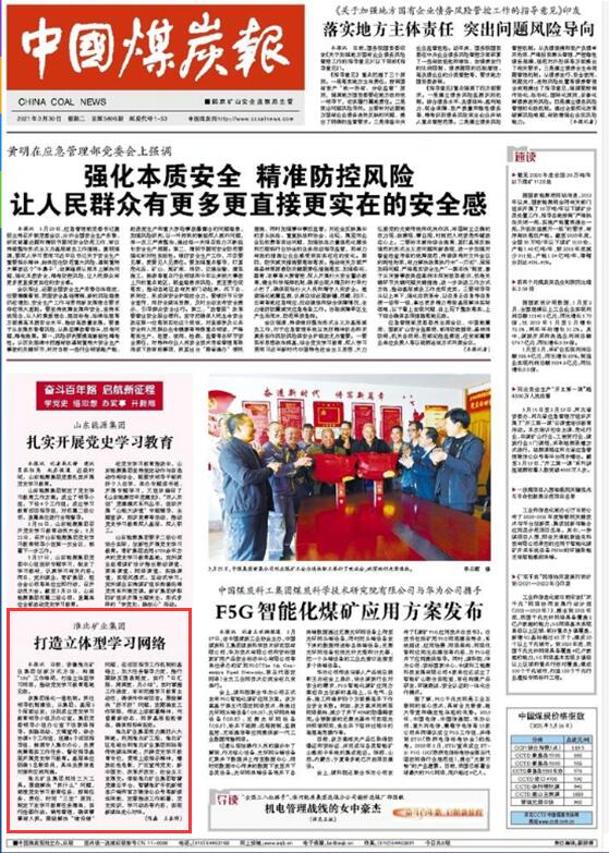 淮北矿业集团努力建好六大阵地。利用淮北矿工报、淮北矿区电视台和淮北矿业集团网站等传统媒体阵地,开辟党史学习教育专栏,贯彻上级指示精神,播放红色电影,广泛宣传党史、新中国史、改革开放史、社会主义发展史。借助淮北矿业集团智慧党建云平台、智慧淮矿手机新闻客户端和官方微信公众号等新媒体阵地,定期推送工作部署、党史知识、学习动态等内容,实现新媒体走心对味。(陈磊 王春明)