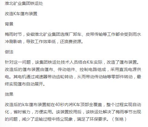 《中国煤炭报》:淮北矿业集团铁运处改造K车篷布装置