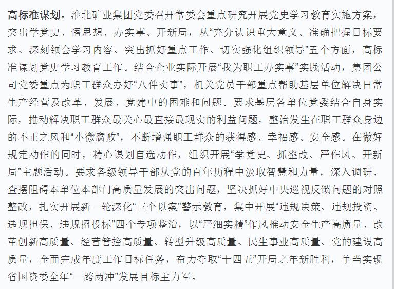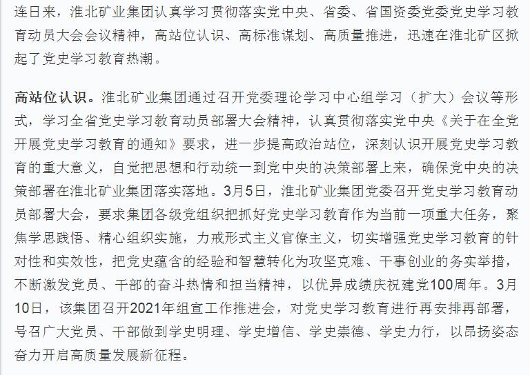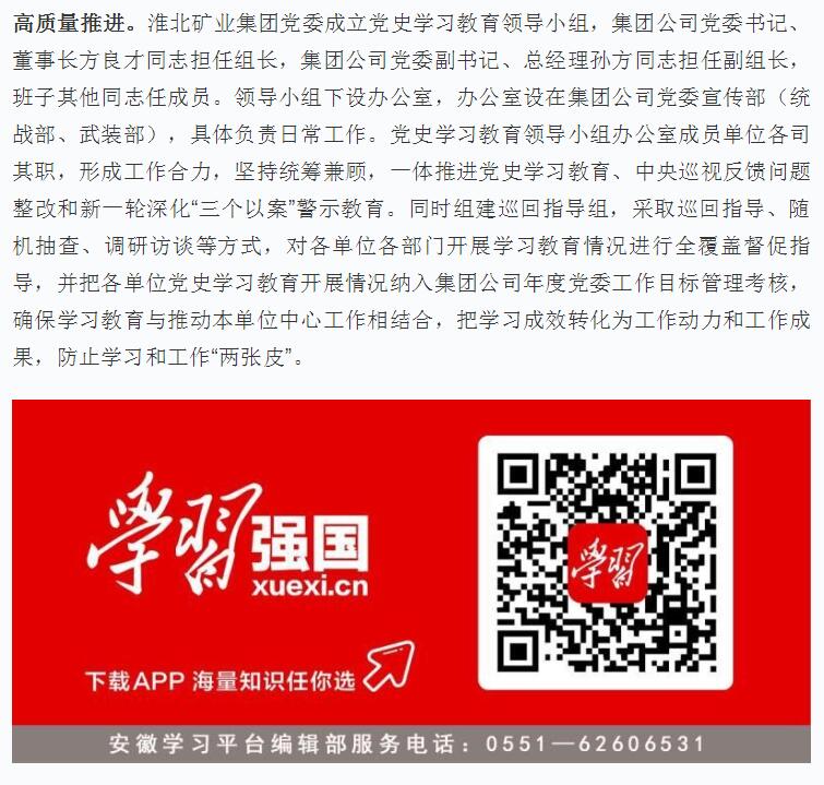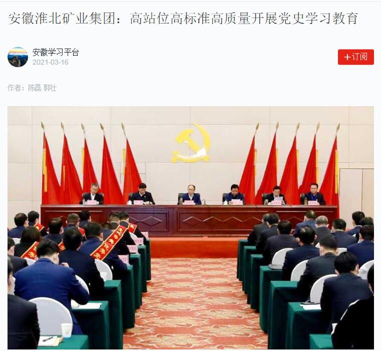 《学习强国》:安徽淮北矿业集团高站位高标准高质量开展党史学习教育