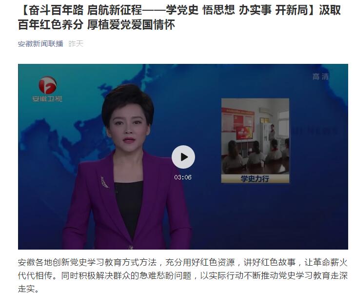 《安徽新闻联播》头条:【奋斗百年路 启航新征程——学党史 悟思想 办实事 开新局】
