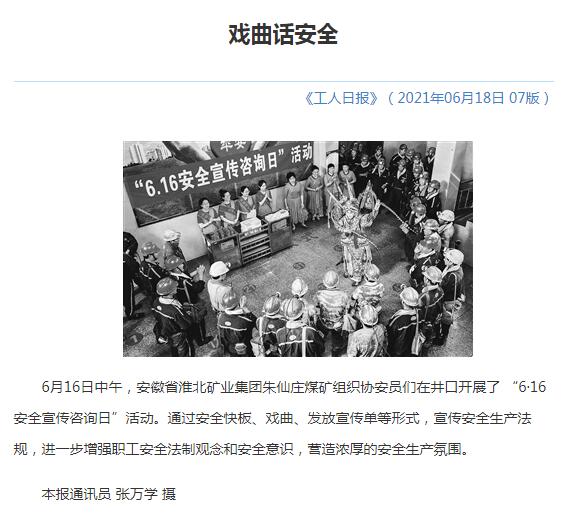 《工人日报》:淮北矿业集团朱仙庄煤矿开展“6·16安全宣传咨询日”活动