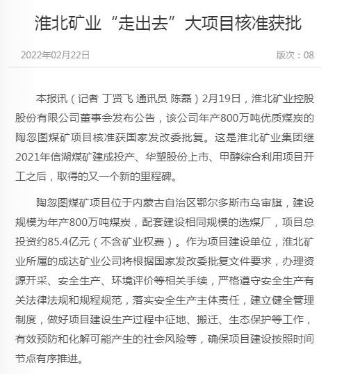 《安徽日报》:淮北矿业“走出去”大项目核准获批