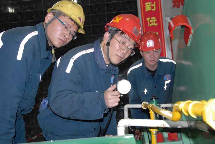 (杨杰和徒弟在生产一线。淮北矿业集团供图)